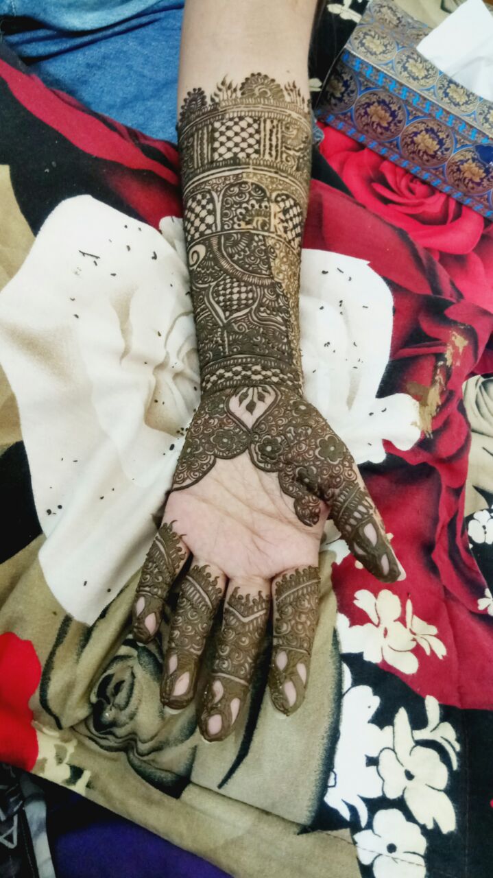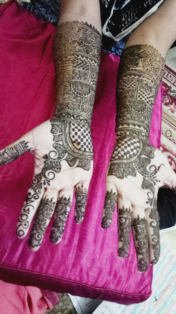 Special Bride Groom design Both hand both side upto elbow}
